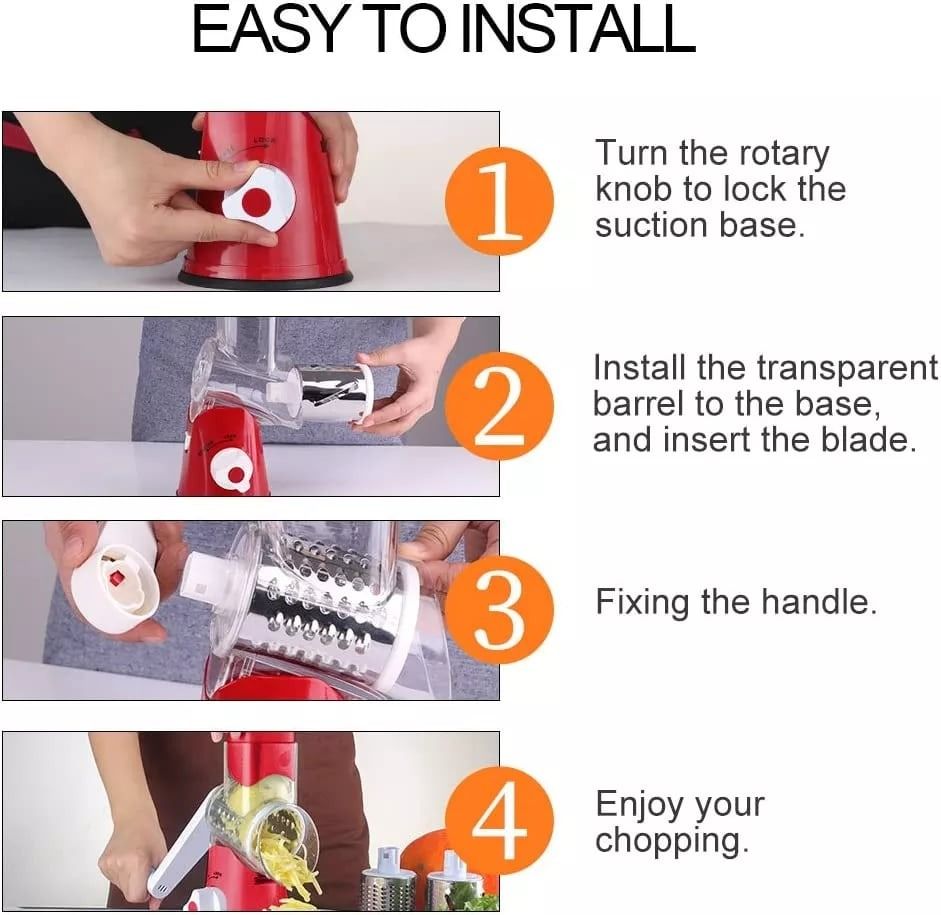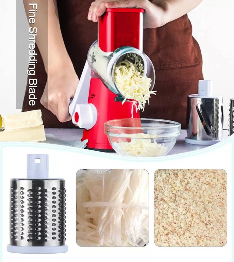 - Rotary Grater: Grandkitchen™ comes with an easy to use handle which allows us to stop the cutting or slicing at any moment if required. It can be used to grate cheese easily. Not just grating, grinding of nuts and spices can be done easily.
