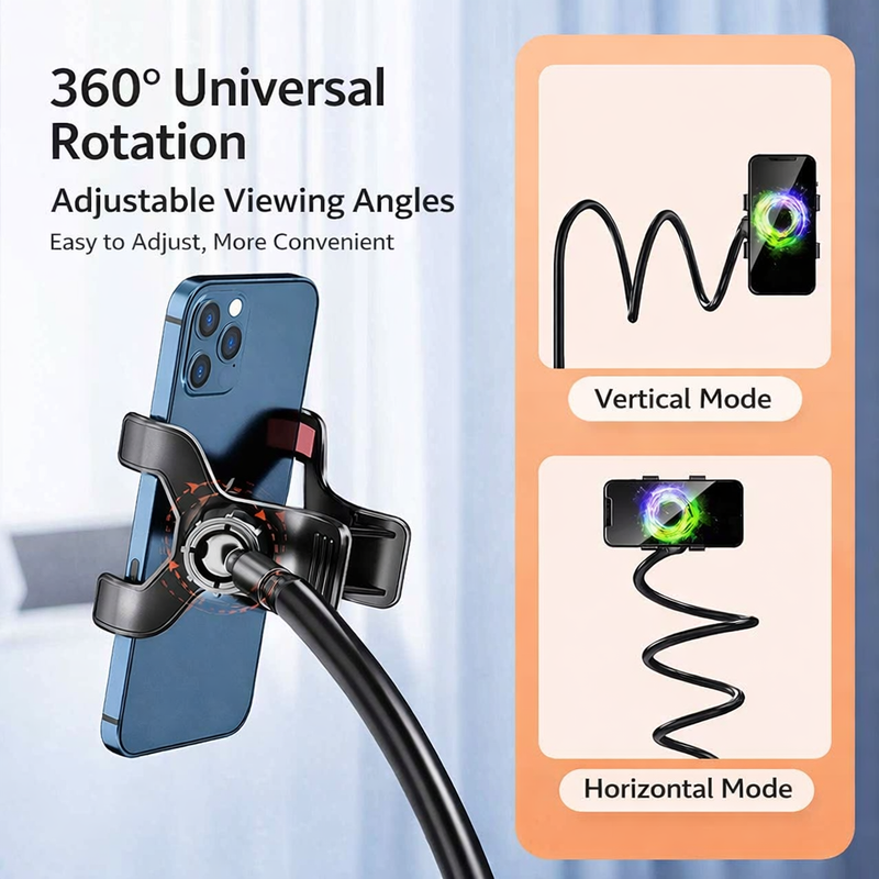 The extended flexible arm can be freely bent and adjusted, allowing you to set the phone at the ideal height and angle. Perfect for hands-free viewing in bed, at a desk, or while