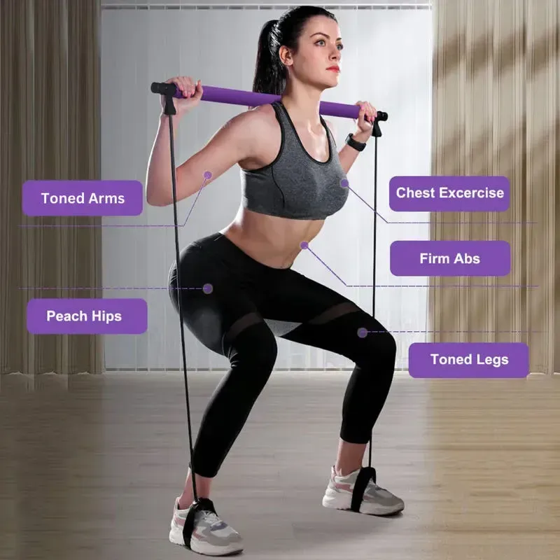 Experience full-body workouts from the comfort of your home. This Multi-Functional Pilates Bar will help you lose wight, build muscle, increase flexibility and agility. It can be used to perform a variety of exercies (upper and lower body)