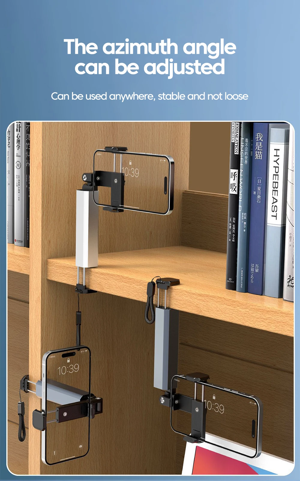 4. Adjustable and rotating: This mobile phone holder can adjust the angle and height and can rotate 360 degrees. Whether you are watching video or shooting video you can adjust to the most comfortable height and angle which greatly increases the comfort of use.